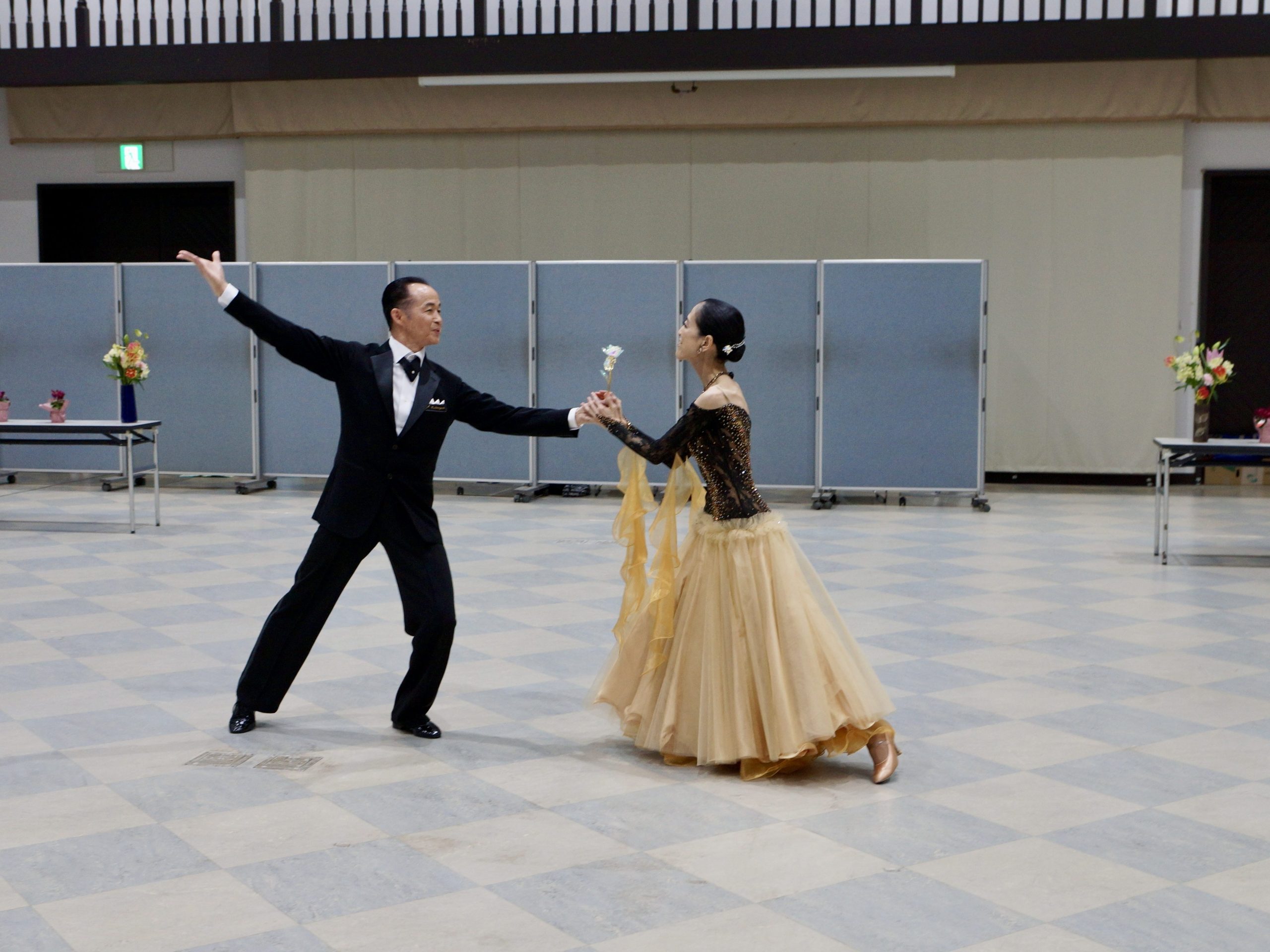カップルの練習におすすめ、お一人でも参加いただけます。ラテンとスタンダードの曲に合わせて自由に練習してください。